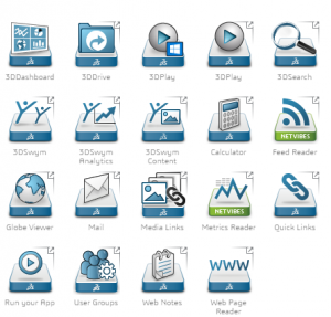 - 3DDashboard — створення інформаційних панелей з персоналізованим представленням релевантної інформації для користувачів, робочих груп та керівників.